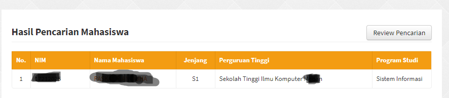 5. Setelah itu berikutnya hendak tampak tabel cocok dengan kata kunci yang kalian cari, berikutnya buat menatap informasi secara perinci klik pada nama, hingga hendak tampak riwat pendidikanmu.