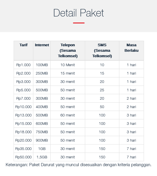- Paket Darurat bisa dipakai cocok periode berlaku.