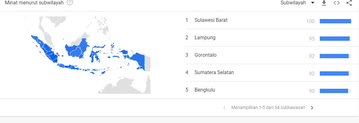 Baik buat menanggapi persoalan tersebuat yang jadi tolak ukur kita merupakan"Google Trends", goole trends merupakan salah satu platform google yang sediakan data tenteng topi ataupun sebutan penelusuran yang banyak dicari orang. pada google trends tugas kita cuma memasukkan" topik" setelah itu memastikan" Negeri" setelah itu kamu hendak memandang statistik serta wilayah mana saja yang memiki tingkatan pencarian paling tinggi tentang topik tersebuat, dengan demikian kita bisa mengambil kesimpulan buat membuat postingan buat diPostingan yang mempunyai kemampuan visitor yang besar.