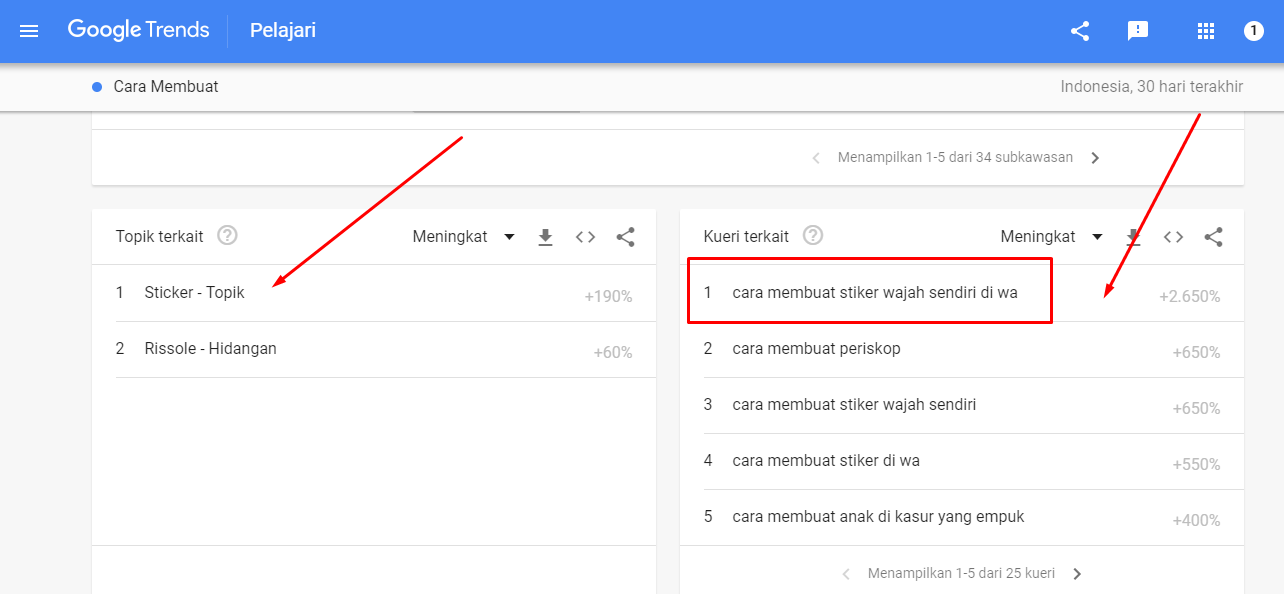Pada sesi ini kamu bisa memandang persentasi tingkatan pencarian bersumber pada topik terpaut serta kueri terpaut. pada sesi ini pula kamu bisa mengambil keputusan buat membuat artikel web atau blog yang mempunyai kesempatan visitor besar.