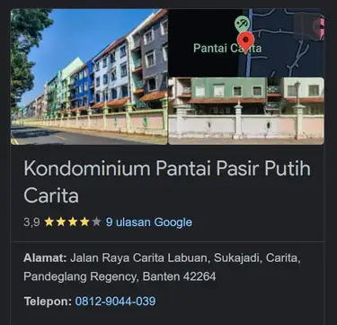 Nah kalo yang satu ini rekomendasi buat kamu yang pengen nginep deket pantai. Kondominium Pantai Pasir Putih ini lokasinya emang langsung di pinggir pantai Pasir Putih, Carita, Banten.