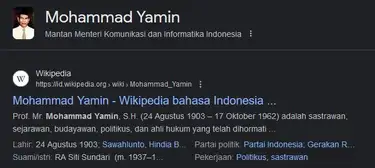 Muhammad Yamin adalah seorang politikus dan budayawan Indonesia. Ia dikenal sebagai salah satu penggagas Sumpah Pemuda.