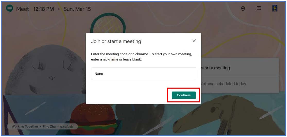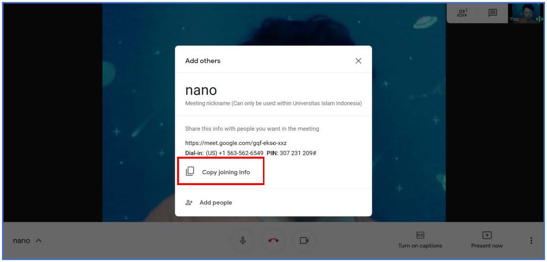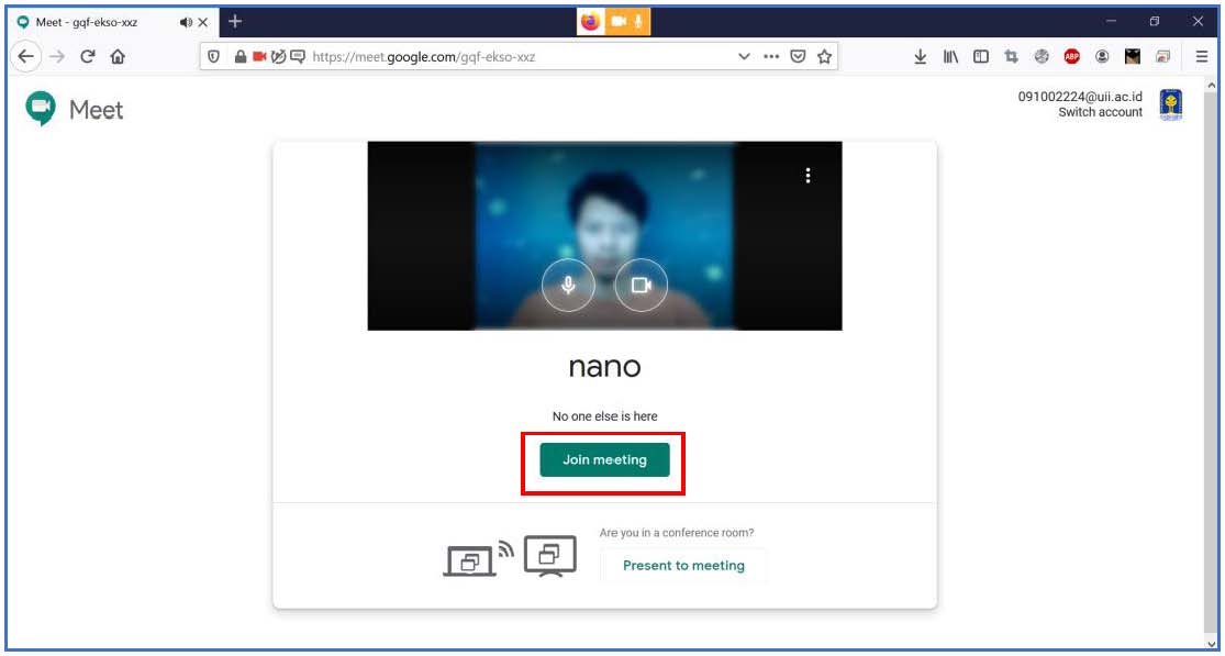 Kalau anda sudah berhasil membagikan kepada oranglain, maka akan muncul pengguna meet lain seperti di bawah. Dan anda bisa langsung memulai rapat itu.