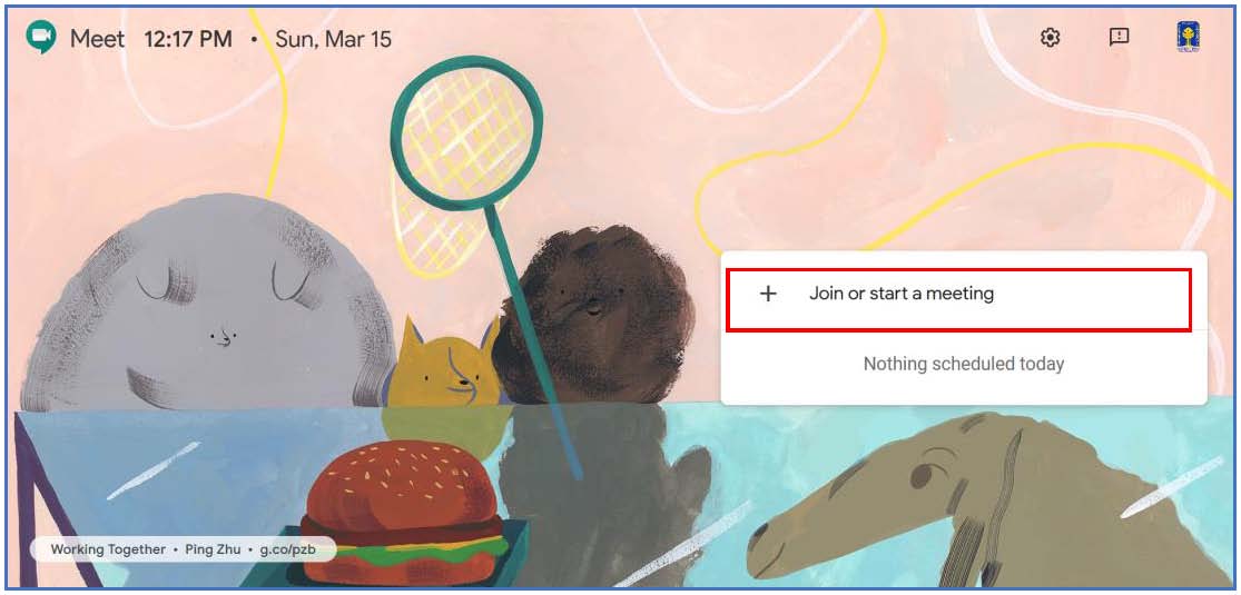 2. Cara Menggunakan Google Meet / Hangouts Meet melalui Laptop atau Komputer sebagai host juga tentunya. Buka browser google chrome / firefox / opera atau yang lainnya. Ketikan meet.google.com akan muncul tampilan seperti di bawah ini. Kalau sudah login, langsung saja klik JOIN OR START A MEETING.