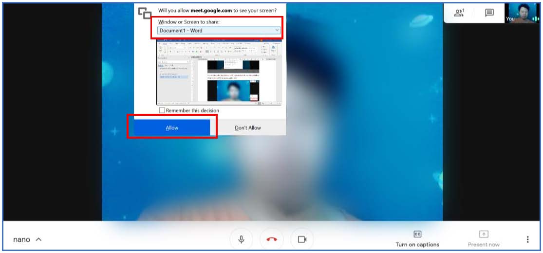 Sebelumnya file nya sudah di buka ya. Nanti muncul notif di atas seperti gambar di bawah. Pilih file presentasi yang ingin anda tampilkan. Lalu klik ALLOW.
